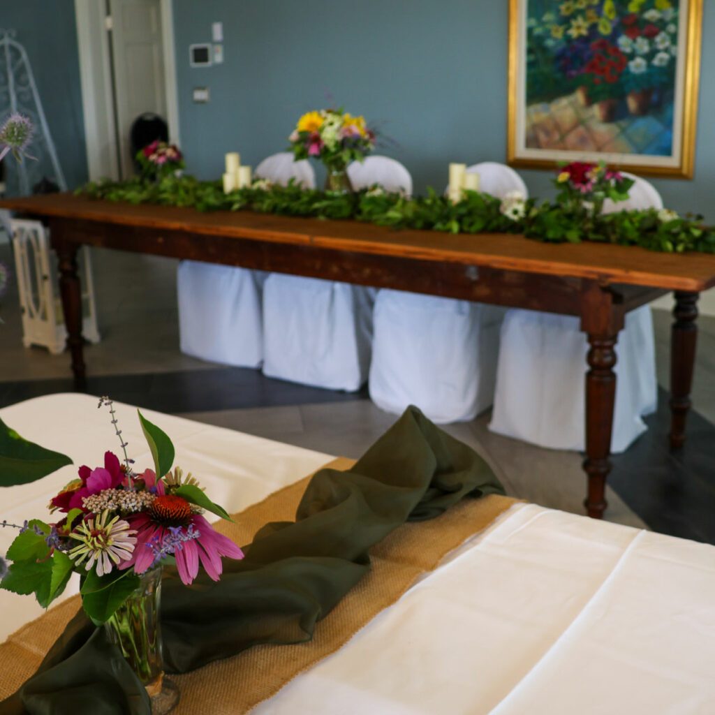 Anna Quinn offers an expansive and versatile space for your wedding reception, bathed in natural light. French doors open onto a covered patio area with a breathtaking lakeview, offering an idyllic backdrop for your event. We provide custom options for setup, dining, décor, and personalized experiences to make your day truly special. Choose from a variety of outdoor venues for exchanging vows, all surrounded by the stunning beauty of Ste. Anne’s Spa. Our all-inclusive packages include meals, spa treatments, access to facilities, and accommodations, ensuring your guests feel pampered from start to finish. Plus, enjoy the added touch of on-site floral arrangements from Ste. Anne’s own gardens.
